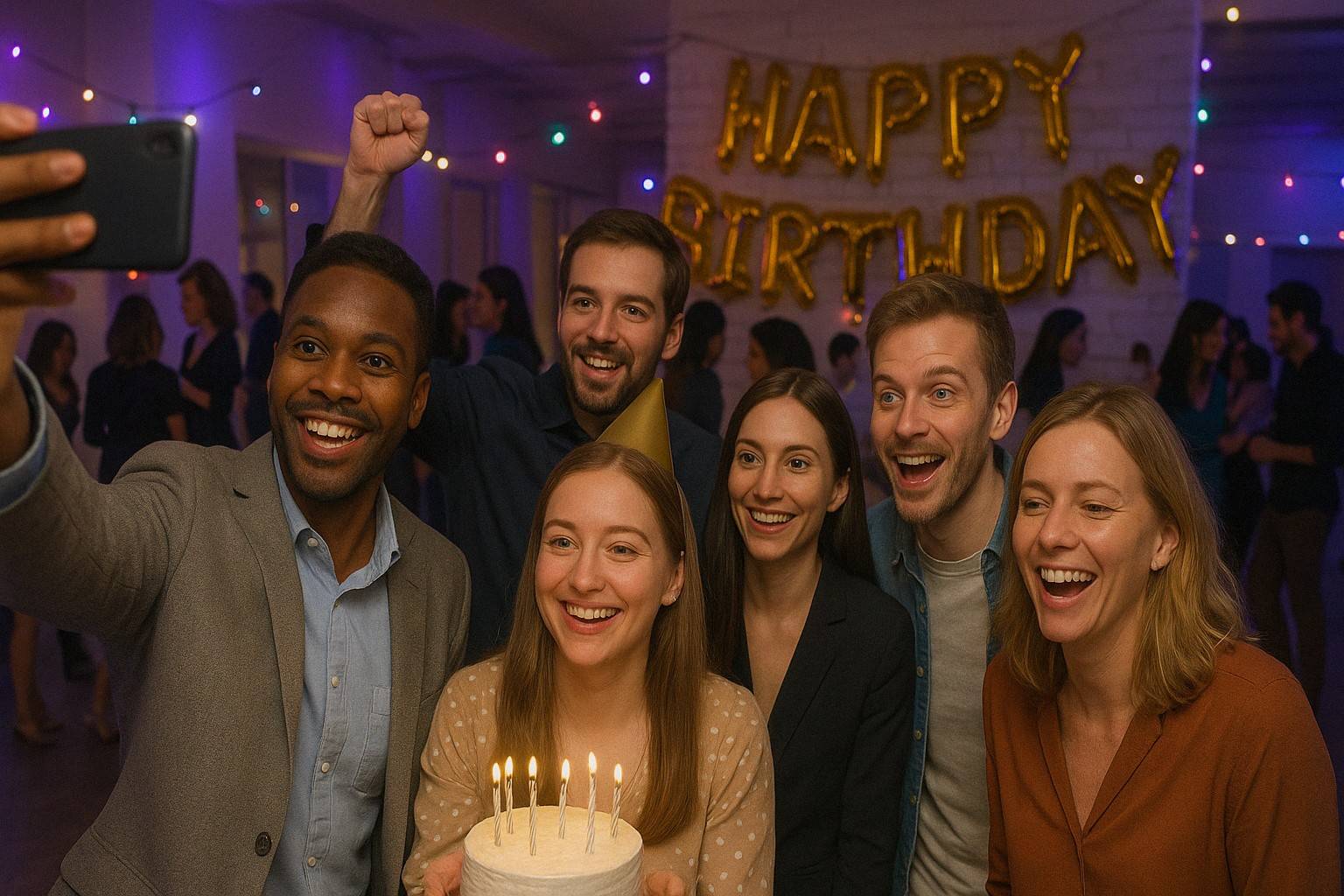 Capturá una foto divertida mientras te preparás en la fiesta o evento.